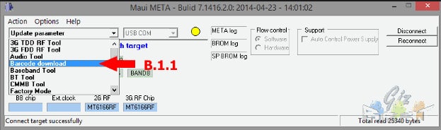 When you complete the installing the software then extract the file. After extracting the tool then you need to open the Maui Meta folder from the extracting location. Then run the program by click on the run as administrator. Then you need to wait until the application dash appears. Now select the option that according to your device. Then you need to click on the reconnect button that looks on the top. After complete these posses then you need to switch off on your device to the pc by using a USB data cable. At that moment if you see the circle color is changed to the yellow, it means that your device is successfully connected to your pc. Now you need to confirm your device by clicking on the get target version option. Then your device information will appear on the screen.